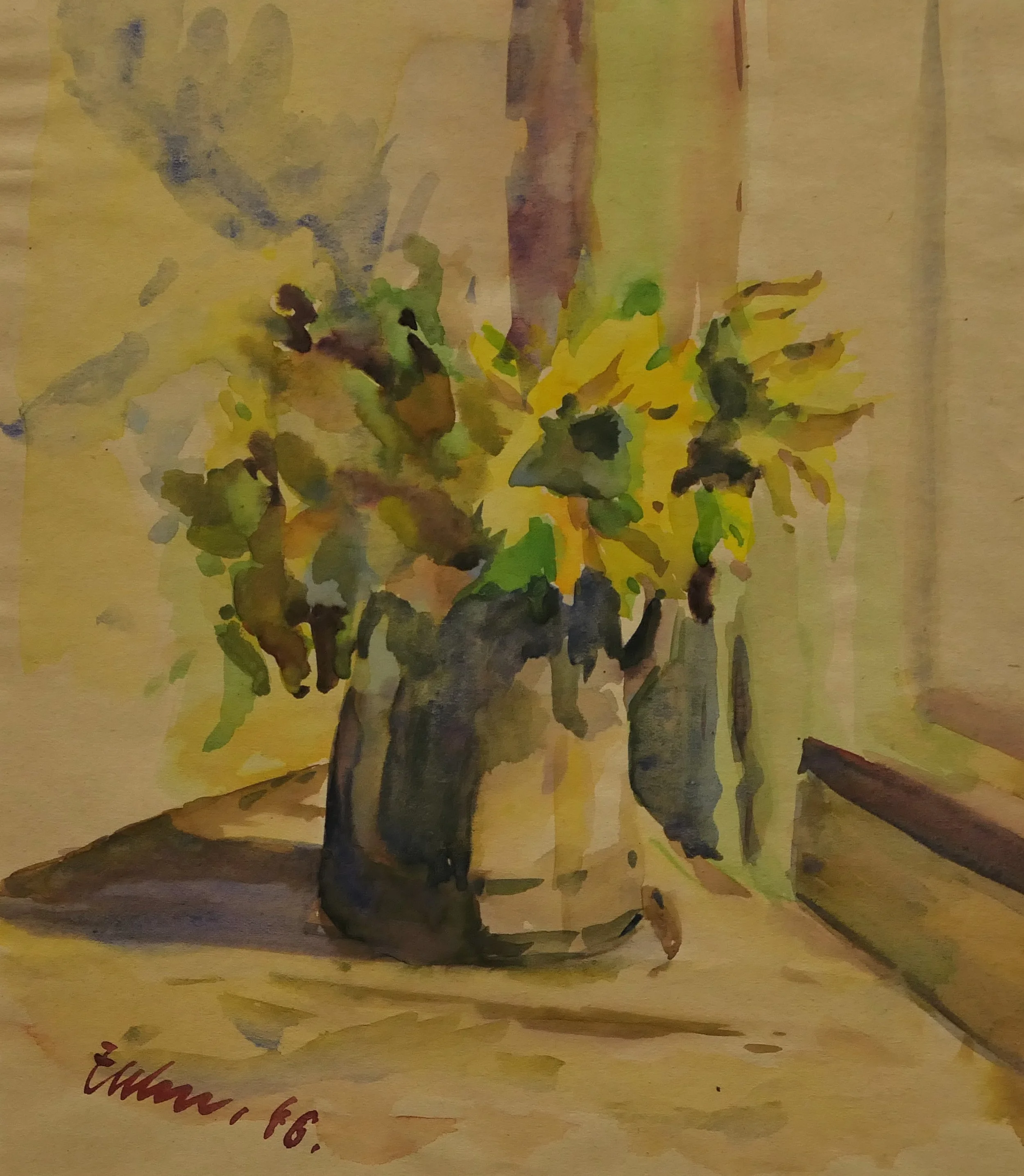 Ab 1931 Kindheitszeichnungen, primär Bleistiftzeichnungen, ein paar wenige Aquarelle. Ab 1940 – 1950 Stilleben aus dem Schulunterricht und der Neigungsgruppe Wahlzeichnen, oft unter Anleitung des Kunstlehrers Prof. Peter Bina. Landschaftsaquarelle entstanden in den Ferien in der Fränkischen Schweiz, im Fichtelgebirge und in den Alpen. Aquarelle von Erlanger Stadtmotivs.